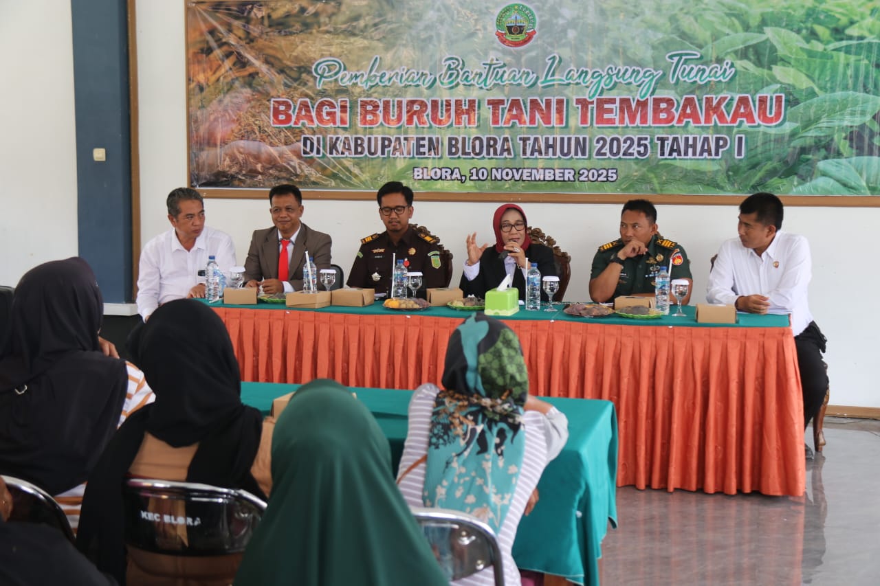 Blora – Ribuan buruh tani tembakau di Kabupaten Blora menerima bantuan uang tunai dari Dana Bagi Hasil Cukai Hasil Tembakau (DBHCHT) tahap pertama tahun 2025. Bantuan tersebut mulai disalurkan oleh Pemerintah Kabupaten Blora, pada Senin (10/11/2025) di Kantor Kecamatan Blora.